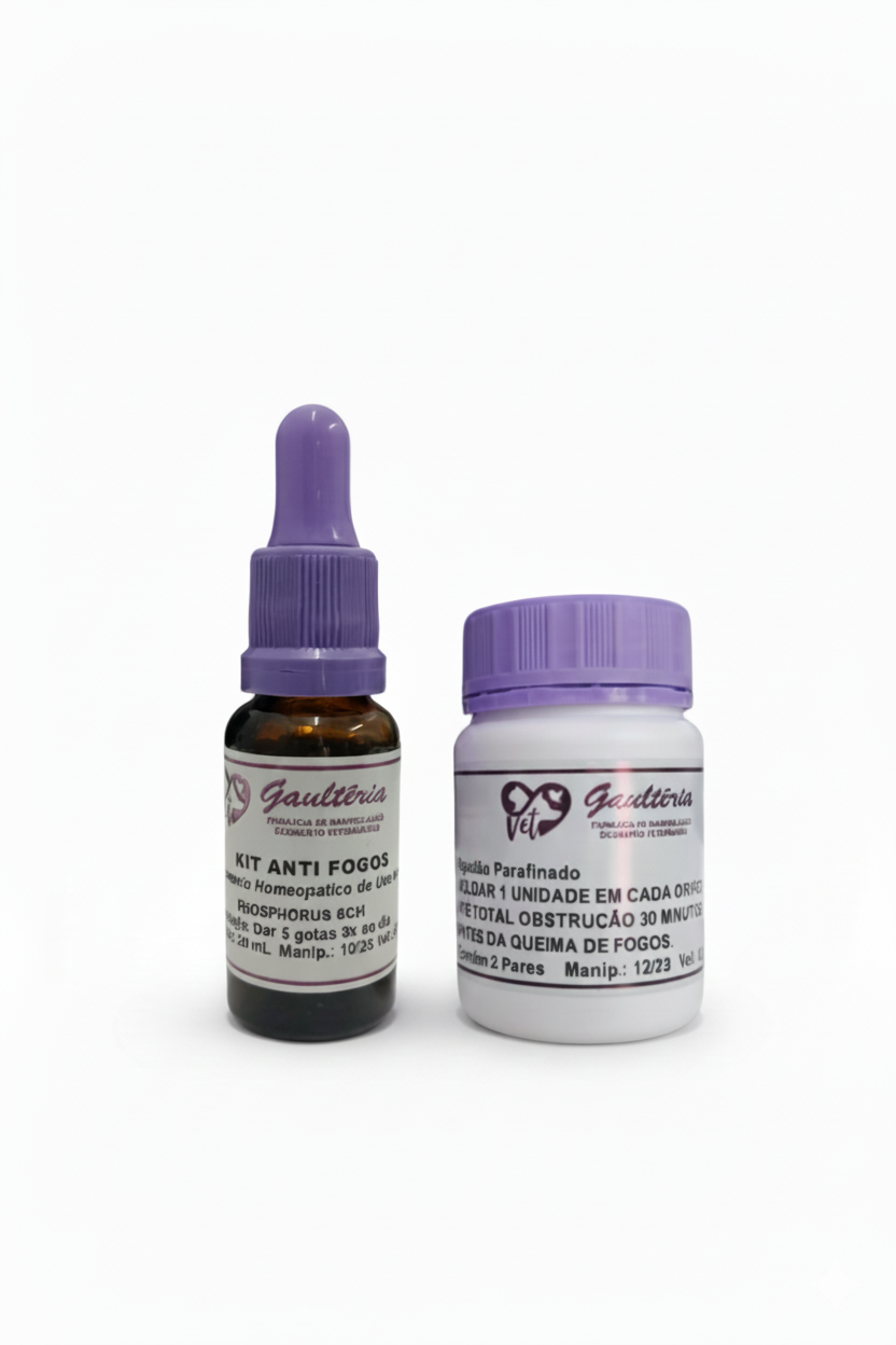 A Gaultéria Vet Farmácia de Manipulação disponibiliza o KIT HOMEOPÁTICO VETERINÁRIO CONTRA FOGOS DE ARTIFÍCIO, composto por: